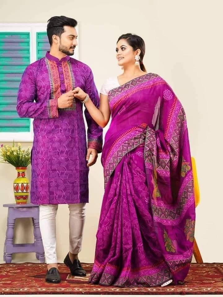 প্রিয় মানুষ এর সাথে কালার ম্যাচিং করে পাঞ্জাবি ও শাড়ি অর্ডার করতে এখনই মেসেজ করুন